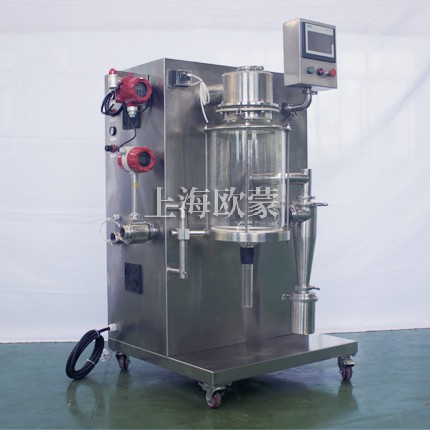 小型噴霧干燥機(jī)主要在科研階段對(duì)溶液或流體樣品進(jìn)行噴霧干燥成粉或微小顆粒。其原理是通過霧化器將樣品霧化成微細(xì)霧滴,進(jìn)入干燥室內(nèi)進(jìn)行熱交換,水份瞬間蒸發(fā),固體經(jīng)過旋風(fēng)分離器進(jìn)行回收,飽和氣體經(jīng)過除塵器過濾后排空,本設(shè)備可應(yīng)用于從試驗(yàn)室到一般研究室的噴霧干燥作業(yè),在食品醫(yī)藥化工行業(yè)均可良好的應(yīng)用。